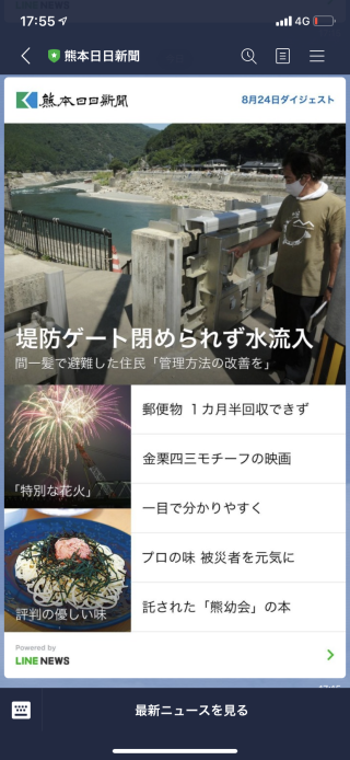 2020年8月24日(月)の熊本日日新聞のLINE配信ダイジェストに